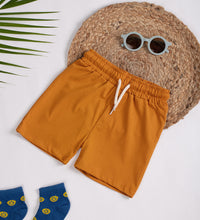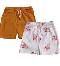 Boys shorts in lightweight cotton fabric with an all-over print and an elasticated, drawstring waist.