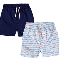 Boys shorts in lightweight cotton fabric with an all-over print and an elasticated, drawstring waist.