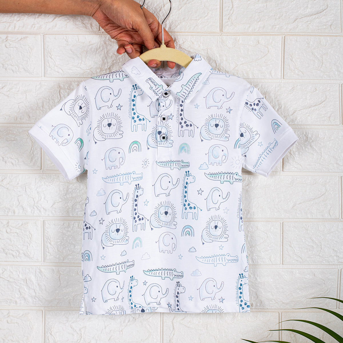 Polo t-shirt in cotton fabric, ribbed collar, button placket and short sleeves with ribbed trims.