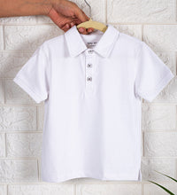 Polo t-shirt in cotton fabric, ribbed collar, button placket and short sleeves with ribbed trims.