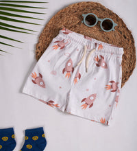 Boys shorts in lightweight cotton fabric with an all-over print and an elasticated, drawstring waist.