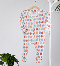 Baby sleepsuit in supersoft cotton fabric with an all-over print. Long sleeves with trims at the cuffs and long legs with cuffed hems. Press buttons down the front and one leg for easy diaper changing specially at night. Ideal all-in-one pajama set for babies during their sleep time.