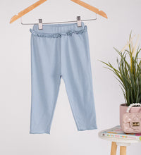 Girls leggings in soft cotton stretchable fabric with cute frill at the hips. Soft elastic at the waist for a comfortable fit over the tummy.