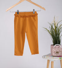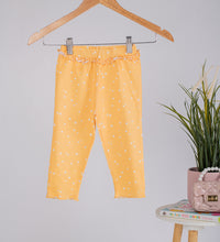 Girls leggings in soft cotton stretchable fabric with cute frill at the hips. Soft elastic at the waist for a comfortable fit over the tummy.