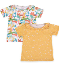 Girls top in soft, printed cotton fabric with a round neckline, ruffle at the shoulders...