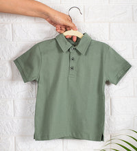 Polo t-shirt in cotton fabric, ribbed collar, button placket and short sleeves with ribbed trims.
