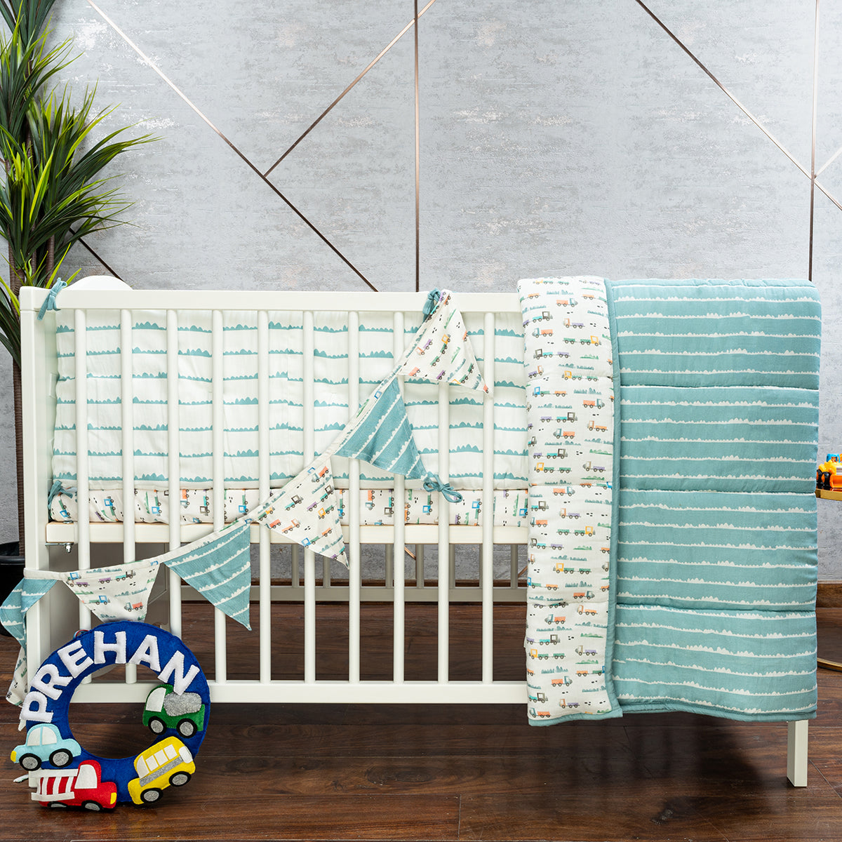 If you’re looking to give your baby’s nursery a personal touch, our cot buntings are just the accessory you need! These adorable buntings can add an extra spark to your baby’s nursery. They can be tied on the outer side of the cot or even be used as wall décor in the nursery.