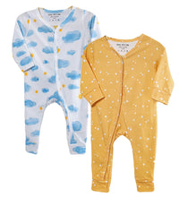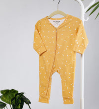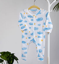 Baby sleepsuit in supersoft cotton fabric with an all-over print. Long sleeves with trims at the cuffs and long legs with cuffed hems. Press buttons down the front and one leg for easy diaper changing specially at night. Ideal all-in-one pajama set for babies during their sleep time.