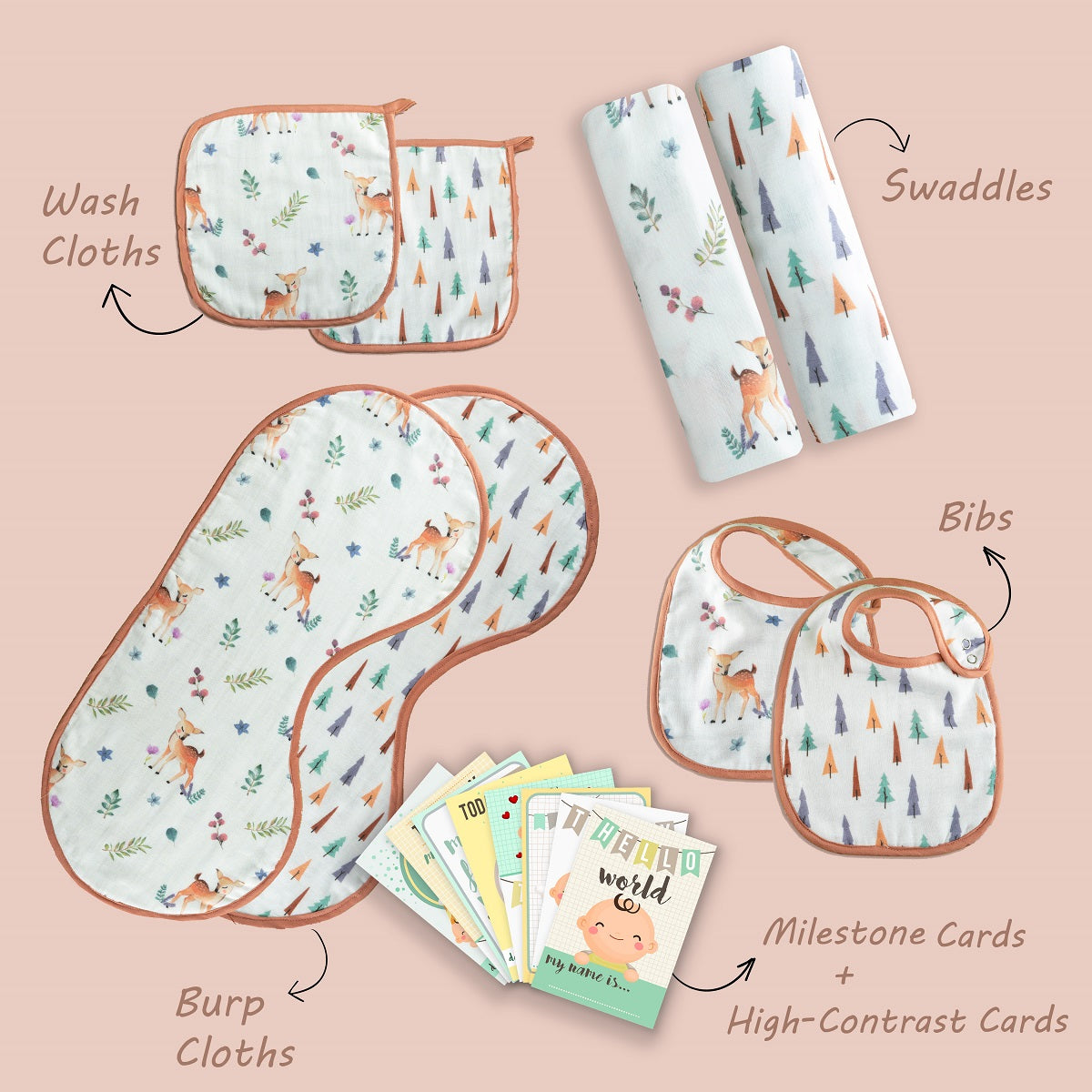 Newborn Essentials Gift Set- Enchanted Forest| Set of 8
