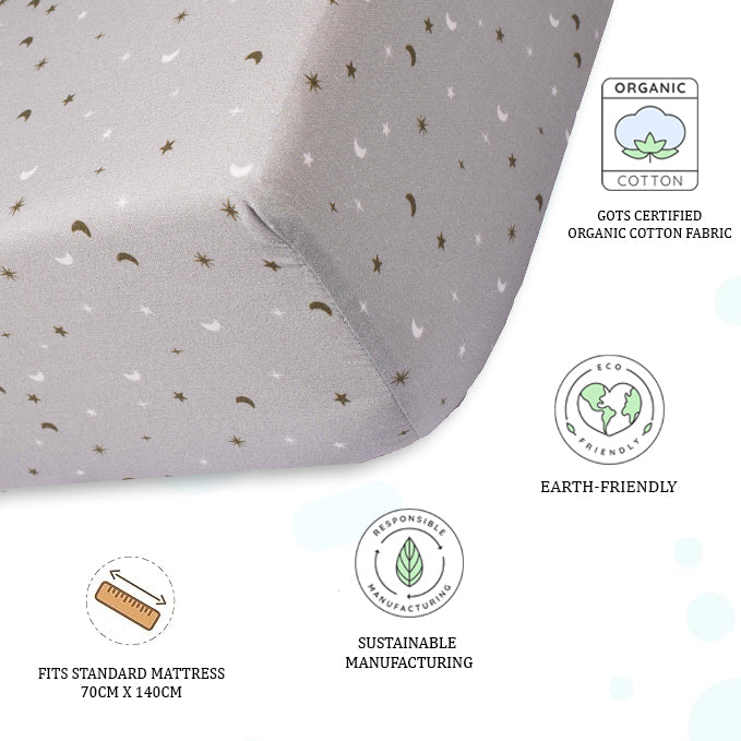 Our fitted cot sheets are made with 100% organic cotton fabric that feels like a cloud to sleep on for your baby. Our sheets come with an elastic band around the entire edge of the sheet making it easier to tuck around the mattress and ensures a secure fit throughout the night.