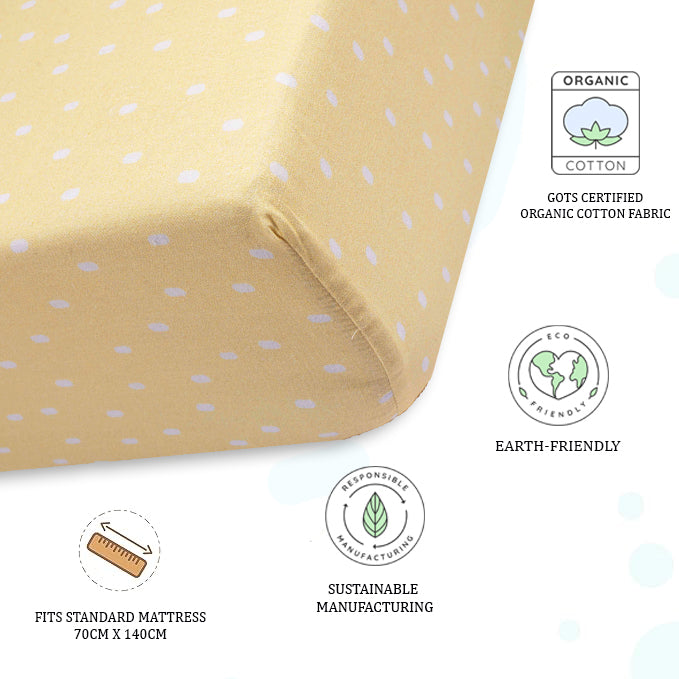 Our fitted cot sheets are made with 100% organic cotton fabric that feels like a cloud to sleep on for your baby. Our sheets come with an elastic band around the entire edge of the sheet making it easier to tuck around the mattress and ensures a secure fit throughout the night.